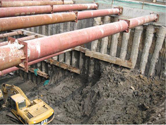 項目位于南京市新模范馬路,監測范圍K3+047~K3+800.036、寬度約30米。起自玄武湖隧道西出口引道終點西側約300m處,隧道下穿南瑞路-司背后、三牌樓大街、工業大學虹橋校區門口。基坑開挖深度12.0m,采用鉆孔灌注樁、SMW工法樁、CMW工法樁、多層鋼、砼支撐的支護形式,坑外施工三軸深層攪拌樁作為止水帷幕。支護結構的安全等級為"一級"。南京市優秀勘察設計二等獎,江蘇省第十二屆優秀勘察設計三等獎。
