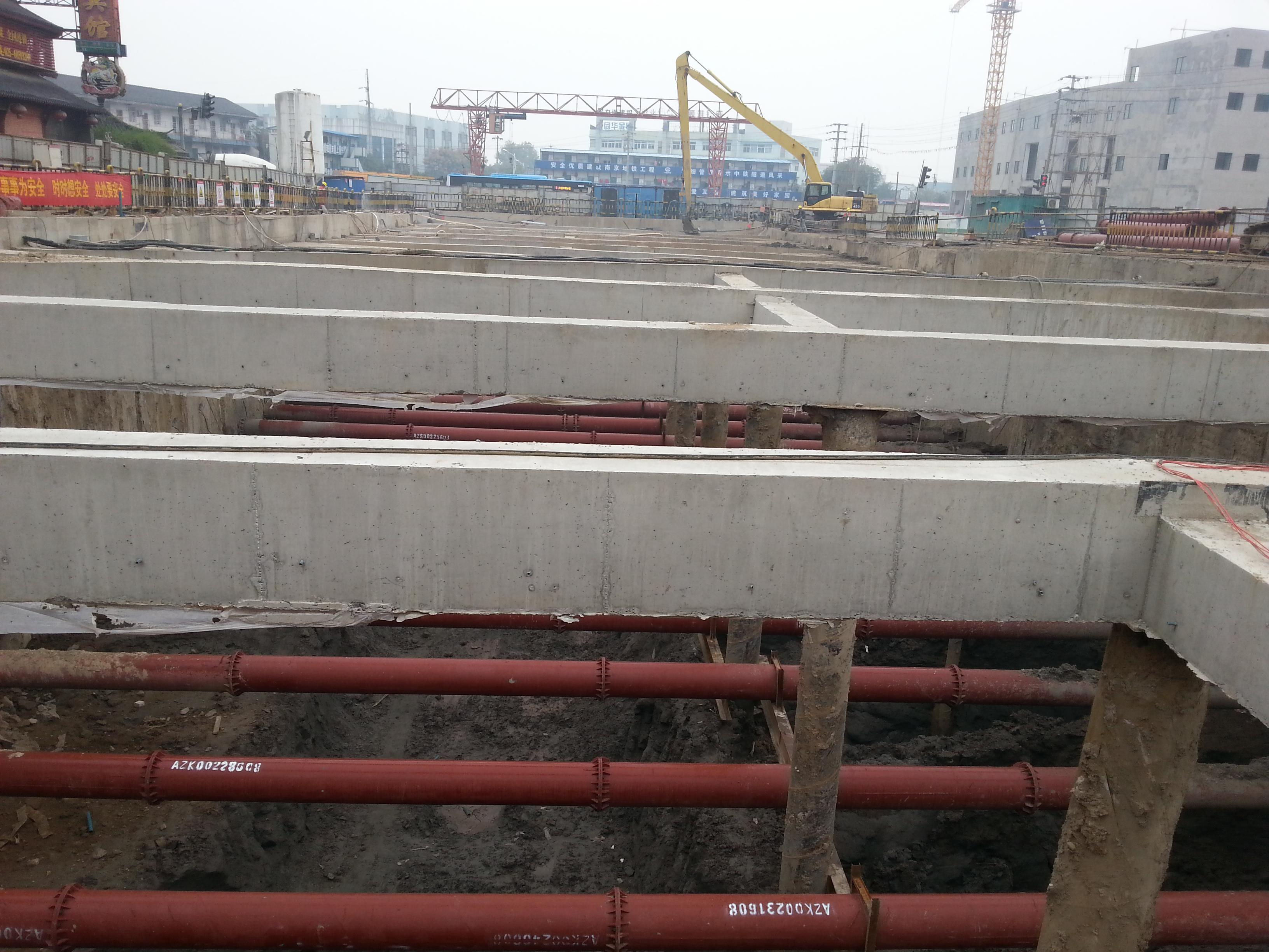 項目位于建康路和中華路交界處東北角,南京外運大廈南側。工程主樓為3幢15~16層,裙樓4~5層,整體設有4層地下室,基坑南北長170m,東西寬140m,基坑圍長608m,開挖深度20m。采用鉆孔灌注樁+4層砼支撐的支護形式,坑外施工三軸深層攪拌樁作為止水帷,基坑支護結構的安全等級為"一級"。南京市優秀工程測繪一等獎,江蘇省城鄉建設系統優秀勘察設計二等獎,江蘇省第十二屆優秀工程勘察二等獎。