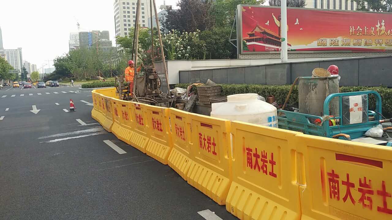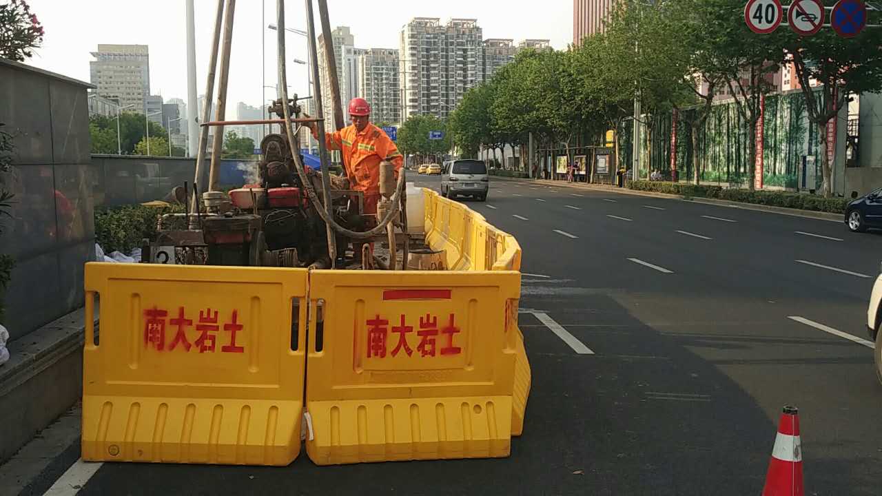 2017年5月中旬,隨著身著南大巖土字樣工作服的技術(shù)及施工人員在漢中門大街與江東路交叉口進行施工圍擋,標(biāo)志著南京地鐵九號線D9-XK02標(biāo)地質(zhì)勘察初勘施工正式啟動。本標(biāo)段南起漢中門大街,沿江東路向北至定淮門大街止,分為三站三區(qū)間,全長約2.8km,初勘計劃工期2個月。